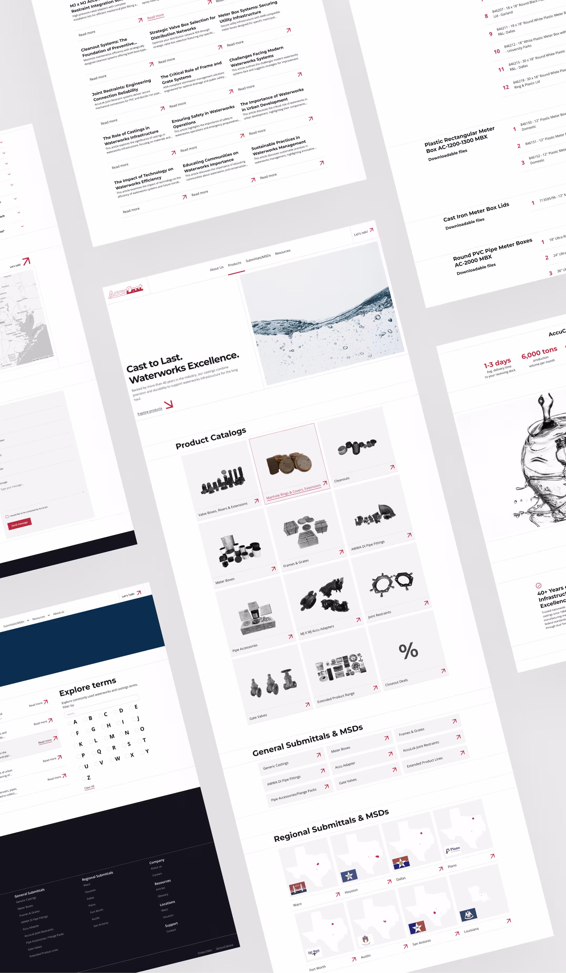 AccuCast makes iron that keeps cities flowing — valves, elbows, the heavy stuff nobody notices until it fails. The brand, however, felt stuck in “municipal‐yellow pages” mode: a dated logo, iron-grey palette, and pages of hard-to-scan specs. We had to crank open the pipes: tell a crisp story, let buyers scan parts in seconds, and give the brand the same engineered swagger as its castings.